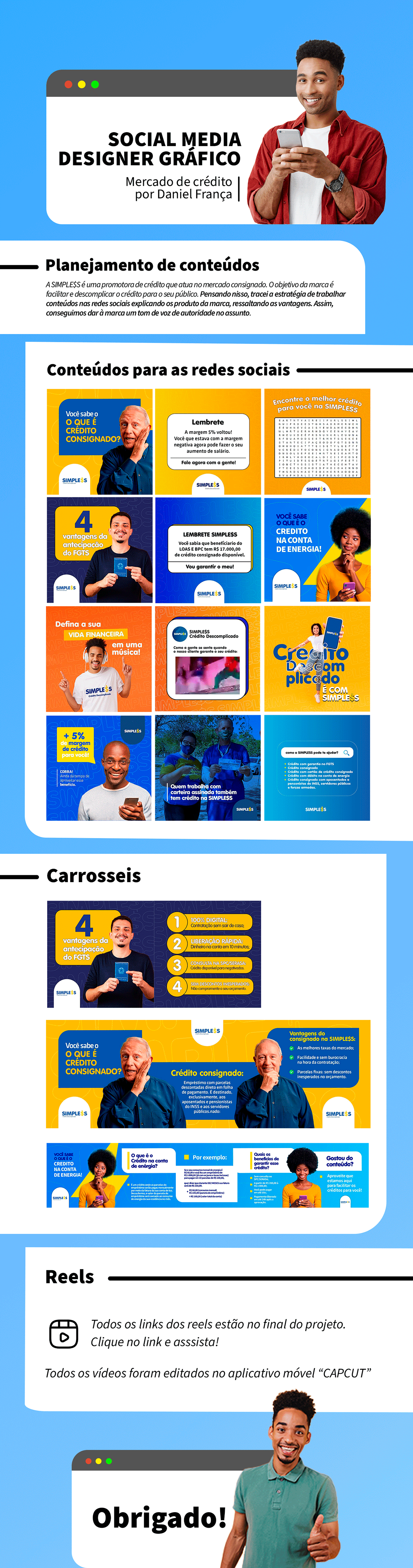 Na Simpless, empresa do ramo financeiro com a missão clara de facilitar e descomplicar o acesso ao crédito, atuei como Social Media e Designer Gráfico, desenvolvendo e implementando a primeira grande estratégia de conteúdo da marca.